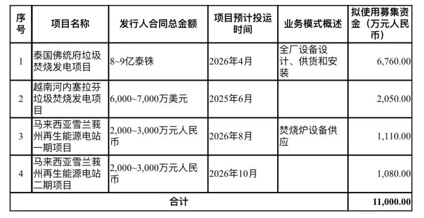 三峰环境所募资金除了用于上述提及的泰国佛统府垃圾焚烧发电项目和马来西亚雪兰莪Jeram垃圾焚烧发电一、二期项目,还包括预计于2025年投产的越南河内塞拉芬垃圾焚烧发电项目。