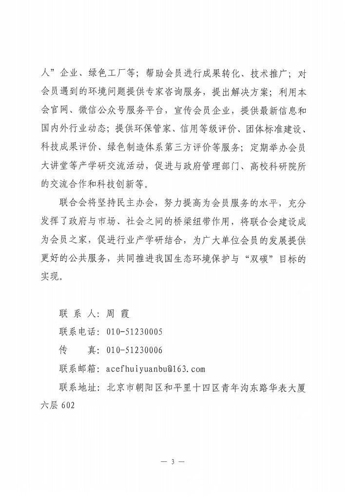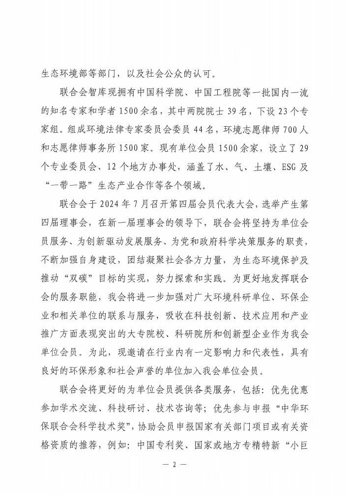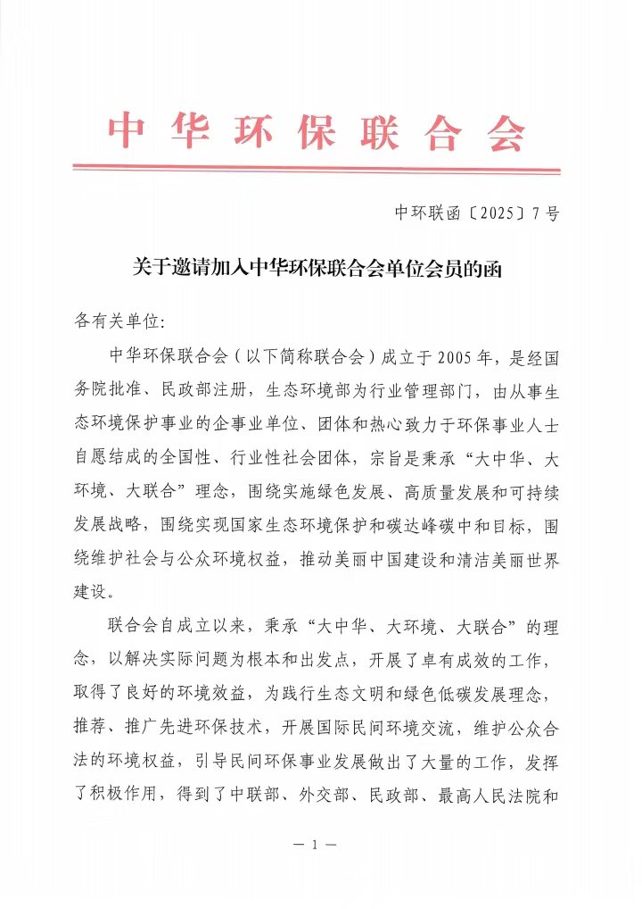 关于邀请加入中华环保联合会单位会员的函