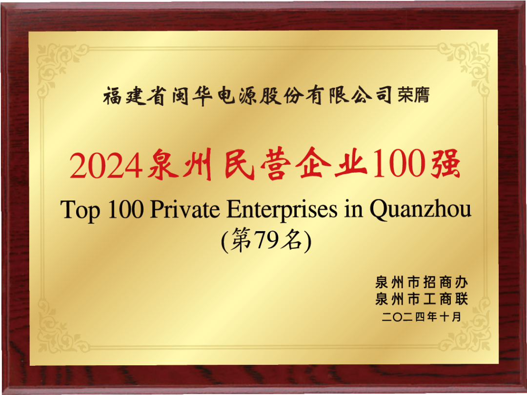 2025年已经启程,闽华电源迎来了发展的新篇章。回顾2024年,公司凭借稳健的经营和卓越的市场表现,全年纳税超7000万元,并荣登泉州市民营百强及纳税百强企业榜单。这一荣誉不仅是对闽华电源长期诚信经营的肯定,更是对企业未来高质量发展的激励。站在新的起点,闽华电源将继续深耕新能源领域,以创新驱动发展,为行业和社会创造更大价值。