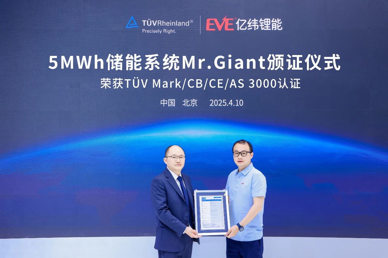 At the scene, EVE Energy's flagship product Mr. Giant also marked a significant milestone by successfully obtaining international certifications including TÜV Mark, CB, CE and AS 3000, thereby acquiring the qualification to acess European and Australian markets.
