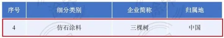 榜单数据显示,三棵树仿石漆在2024年销量突破10万吨,以亮眼业绩在全球仿石漆领域独占鳌头。值得一提的是,三棵树是此次榜单中仅有的两家中国上榜企业之一,这印证了中国创造的产品实力与全球市场认可,代表着中国制造在全球高端涂料领域的强劲崛起,为涂料行业注入全新发展动能。