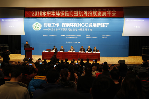 12月17日至18日,以“创新工作,探索环保NGO发展新路子”为主题的2016中华环保民间组织可持续发展年会(以下简称“年会”)在京举办。论坛秉承“大中华、大环境、大联合”的理念,为环保NGO搭建政策学习、工作交流、经验分享的平台。全国工商联原副主席、中华环保联合会副主席孙晓华,环保部宣教中心主任贾峰,中国环境文化促进会秘书长章少民,中华环保联合会秘书长张永红、副秘书长谢玉红,中国民间组织国际交流促进会副秘书长崔春来,清华大学公共管理学院、NGO研究所助理教授蓝煜昕等领导及嘉宾出席了此次年会。来自与环保NGO相关的政府部门领导、国内外环保NGO代表、NGO研究专家学者、支持环保的各界人士和环保志愿者及媒体代表等240余人参会。