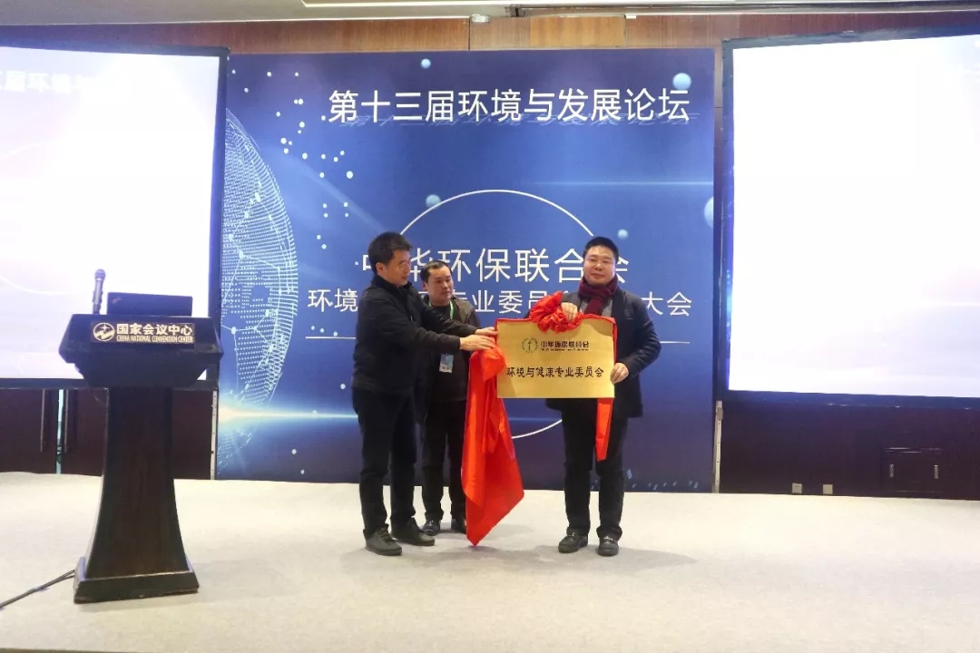 随后,由中华环保联合会副主席杜少中为环境与健康专业委员会进行了授牌,参会领导、嘉宾进行合影留念。