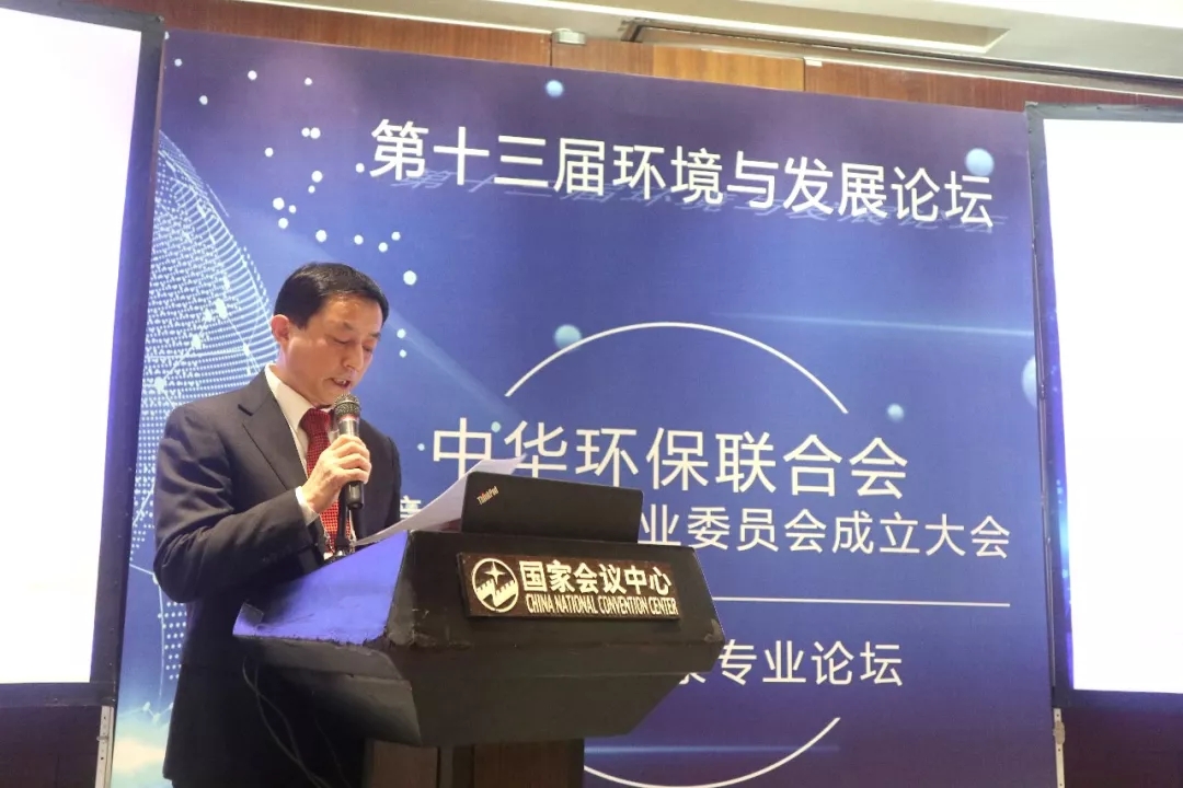 ▲中华环保联合会副主席杜少中宣读成立环境与健康专业委员会的批复文件