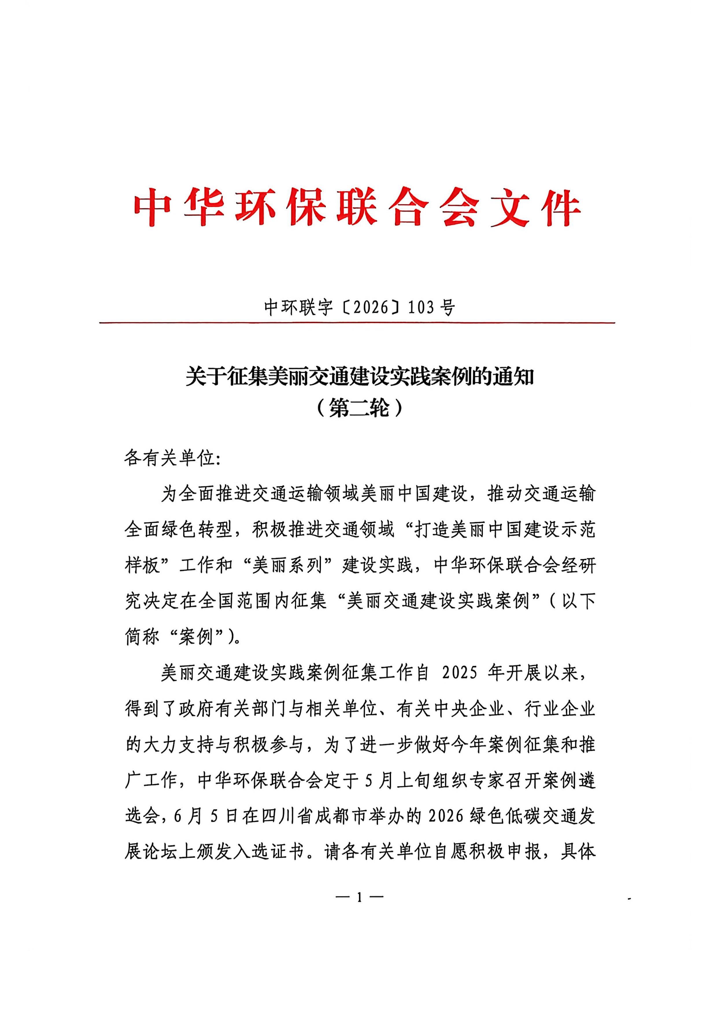 关于征集美丽交通建设实践案例的通知(第二轮)