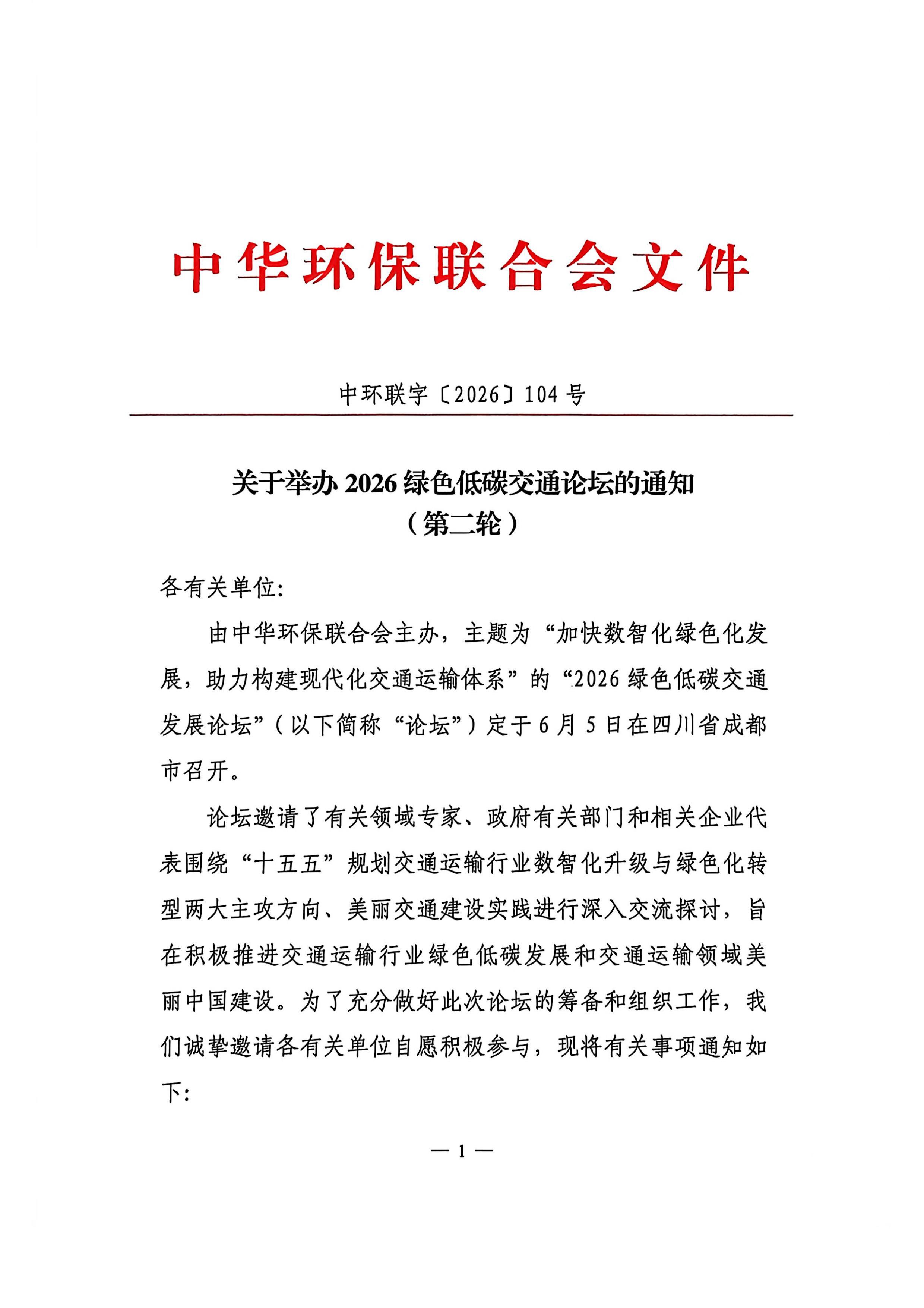 关于举办 2026绿色低碳交通论坛的通知(第二轮)