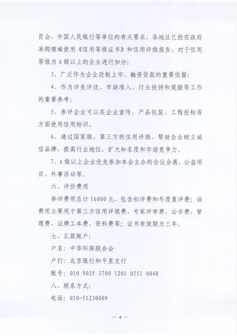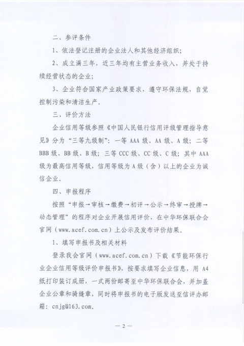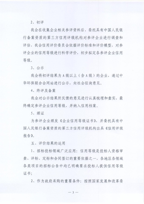 关于开展全国节能环保行业“企业信用等级评价工作”的通知