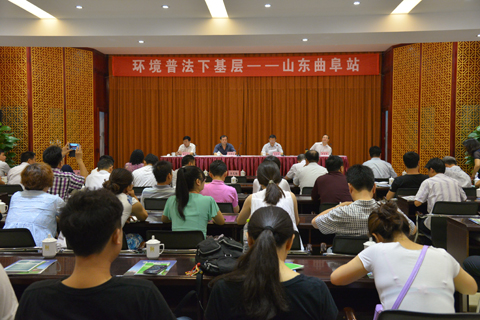 6月26日,中华环保联合会“环境普法下基层”系列宣传活动走进孔子的故乡----曲阜市,活动以领导及专家授课、播放专题片、发放宣传资料等丰富多彩的形式,为当地群众送上了一场宣传和普及《新环保法》相关法律知识的“盛宴”。中华环保联合会副秘书长吕克勤主持启动仪式并授课,山东省环保宣传教育中心副主任王明远、济宁市环保局局长张言申、曲阜市政府副市长林长运分别致辞。曲阜市社区居民代表、重点企业代表、镇(街)环保所长、济宁及曲阜环保局环保执法人员代表、新闻媒体记者代表共计200余人参加活动。
