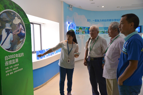中国达能饮料环境、水源与企业社会责任助理总监古陶向调研团介绍水源地情况
