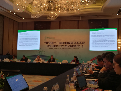 7月5-6日,2016年二十国集团民间社会(C20)会议在青岛举行,来自五十多个国家的代表,围绕“消除贫困、绿色发展、创新驱动与民间贡献”这一主题进行了坦诚深入的交流。国家主席习近平向大会发来贺信,强调民间社会组织是各国民众参与公共事务、推动经济社会发展的重要力量,中国政府支持本国社会组织参与国内经济社会建设,也欢迎境外非政府组织来华开展友好交流合作,并努力创造良好法治环境,为其在华活动提供便利,保障其合法权益。