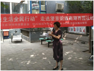 8月5日, “绿色生活全民行动”环保公益活动第一站在望京南湖西园社区举行。本次活动由我会主办、佳粹环境承办,并得到了利洁时(中国)投资有限公司、博西家用电器(中国)有限公司的特别支持。我会副秘书长谢玉红出席本次活动并发言。