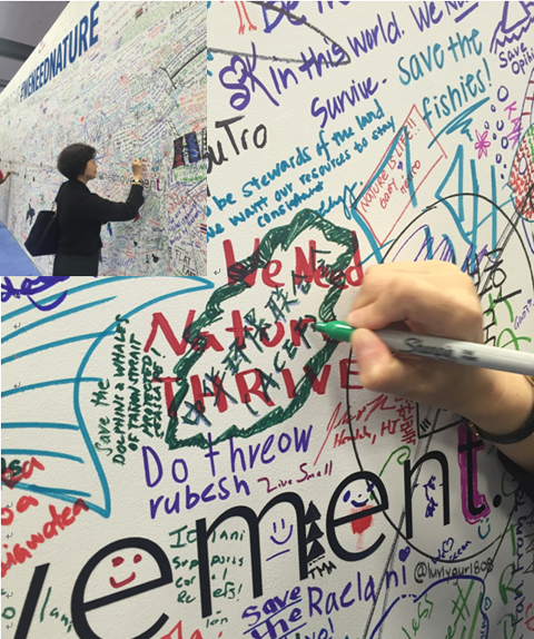 谢玉红副秘书长在“我们需要大自然”的世界涂鸦墙上留下联合会的名字