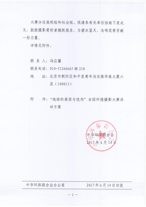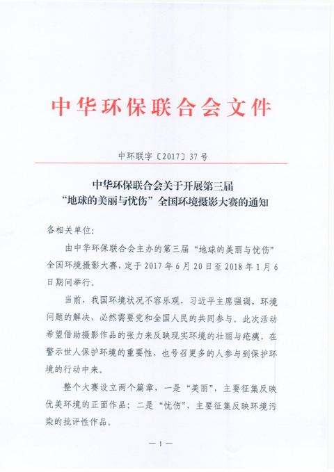 中华环保联合会关于开展第三届“地球的美丽与忧伤”全国环境摄影大赛的通知