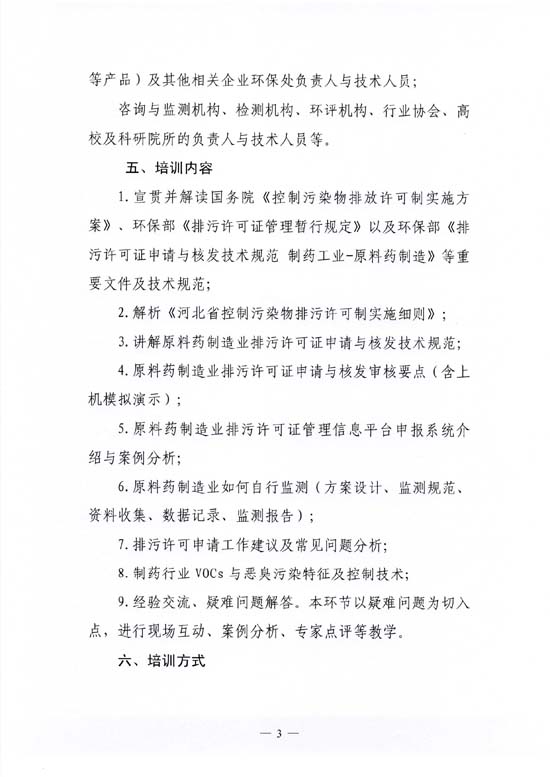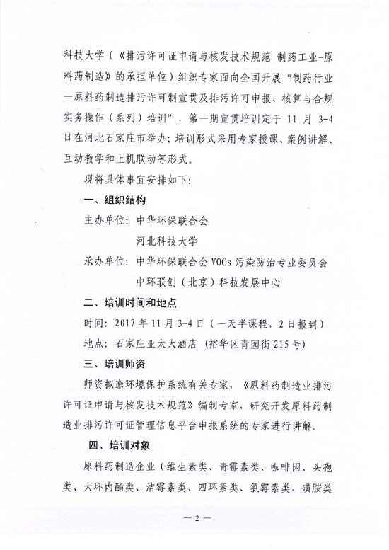 关于举办“制药行业——原料药制造排污许可制宣贯及排污许可申报、核算与合规实务(系列)操作培训”的通知