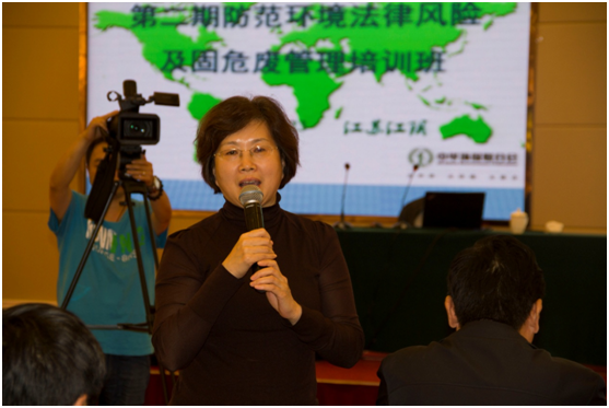 培训班邀到多位知名专家、领导进行授课。他们是具有丰富环境督查和环境应急工作经验的环保部环境监察局原巡视员、副局长张志敏同志和环保部华东环境保护督查中心原副主任缪旭波同志;在环境科技标准管理、环境污染第三方治理方面具有深入工作研究的环保部科技标准司原巡视员胥树凡同志;在固危废管理领域资深专家中国环科院原固体废物污染控制技术研究所原所长王琪同志;来自企业的北京高能时代环境技术股份有限公司副总工程师谭金同志、中海油公司惠州中海节能环保技术服务有限公司总经理韩明同志。还专门安排到江苏苏利精细化工股份有限公司进行考察。通过专家的授课和实地考察,要让大家知道,固危废怎样鉴别及标准,实际工作中对危险废物如何规范化、资源化、减量化、无害化管理;在法律规定下,我们必须做什么,怎么做,不做会受到怎样的处罚,出了污染事故怎么应急处置,都是很实实在在的课程。就是要引导和帮助企业严格环境管理、合法经营和加快转型升级,切实保障生态环境安全,为环保事业的发展、为企业规范化发展发挥好社会第三方力量的支撑作用。