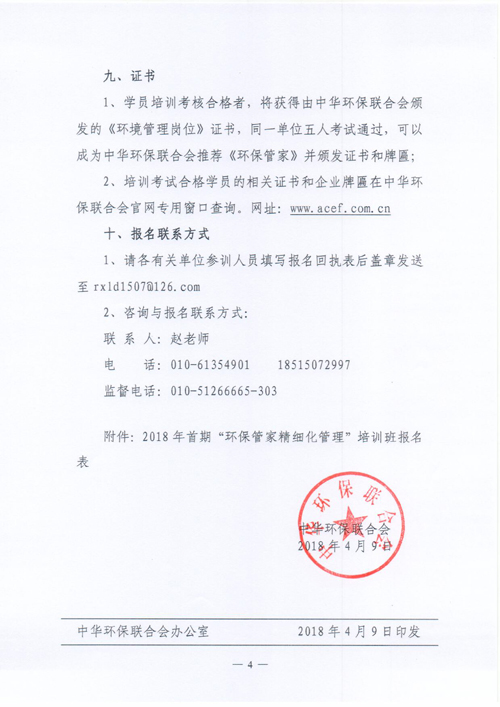关于举办2018年首期环保管家精细化管理培训班的通知