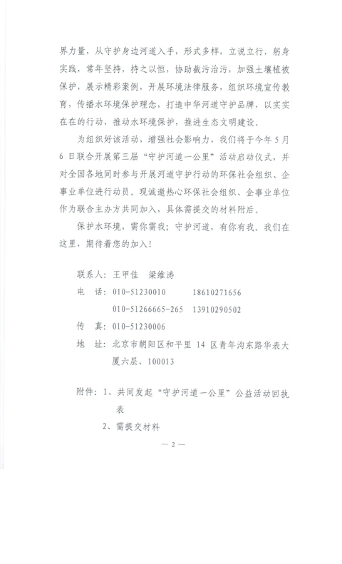 关于邀请联合主办第三届“益起行,益起动——守护河道一公里”环保公益活动的通知