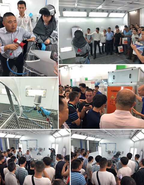 为了对推动汽车维修业环保达标具体的落实之处有了更加全面、深刻的了解与感悟。本次论坛还特别设立了实地演示操作专区、包括四川蓝雨禾环保科技有限公司演示:VOCs末端处理设备;艾仕得涂料系统有限公司演示:环保水性漆;深圳美施联科科技有限公司演示:环保喷枪。气氛活跃,厂家针对客户现场提出的问题进行解答和实操。