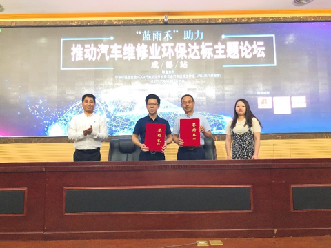 成都市成华区汽车维修行业协会与中华环保联合会合作签约仪式,共筑汽车维修业环保达标坚固城墙。