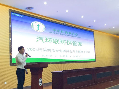 中华环保联合会VOCs污染防治专业委员会秘书长助理兼汽车维修工作组主任  于波先生做关于“汽环联环保管家”的主题演讲