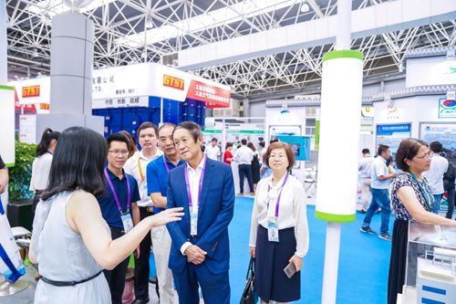 图为浙江省生态环境厅副厅长单锦炎带队参观展会        图为中国工程院院士刘文清参观展会