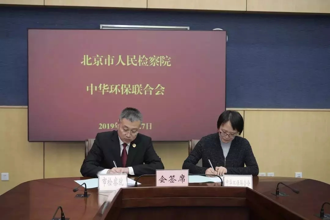 2019年12月27日,北京市检察院与十家社会组织举行《关于加强协作配合共同推进公益诉讼工作的意见》会签仪式暨座谈会,中华环保联合会作为签约的十家社会组织之一出席了会签仪式。