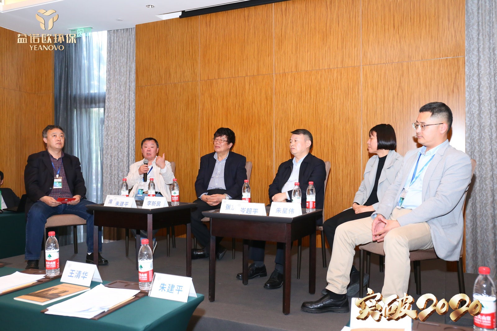 图中从左至右依次为:工业园区专委会(筹)秘书长、原环境保护部卫星环境应用中心党委副书记兼纪委书记席俊清;工业园区专委会(筹)主任委员、原环境保护部监测司巡视员朱建平;原环境保护部污染防治司巡视员李新民;生态环境部监测司原巡视员张京麒;生态环境部华南环境科学研究所大气环境与污染控制研究中心主任岑超平;广东省工业废水处理零排放工程技术研究中心副总工程师朱星伟。