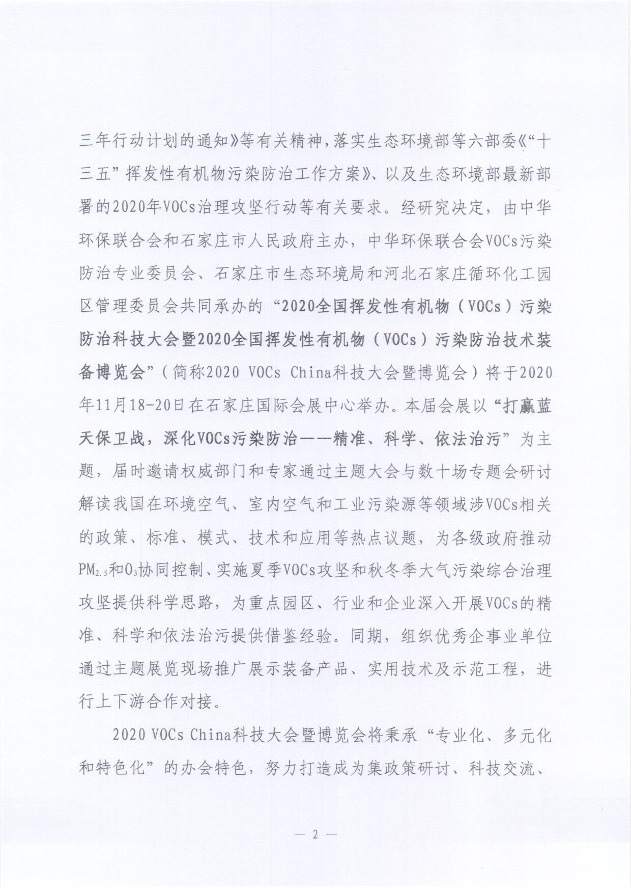 关于邀请参加“2020全国挥发性有机物(VOCs)污染防治科技大会暨2020全国挥发性有机物(VOCs)污染防治技术装备博览会”的函