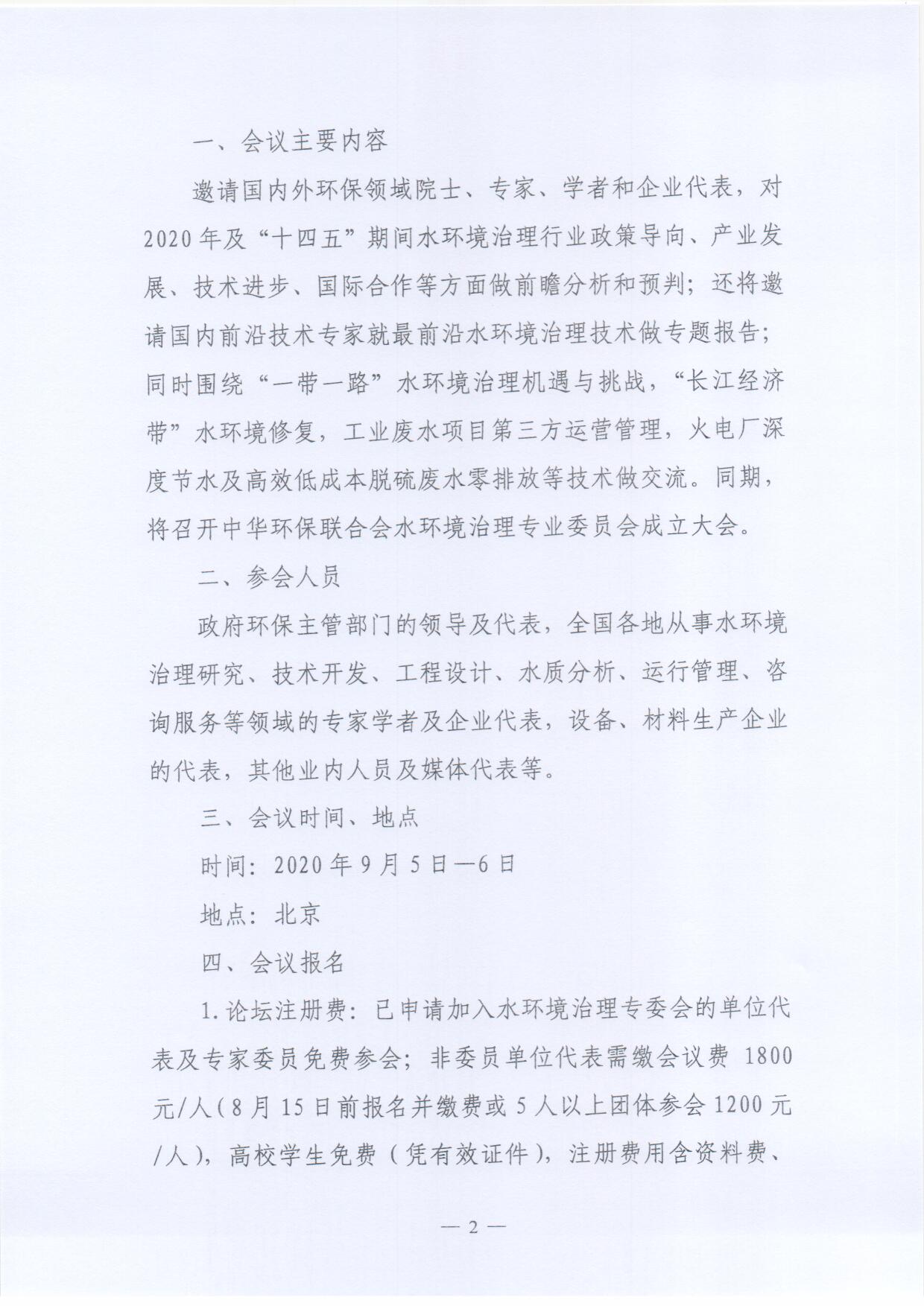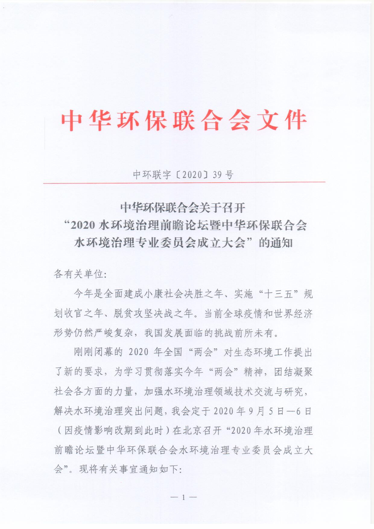 关于召开“2020水环境治理前瞻论坛暨中华环保联合会水环境治理专业委员会成立大会”的通知