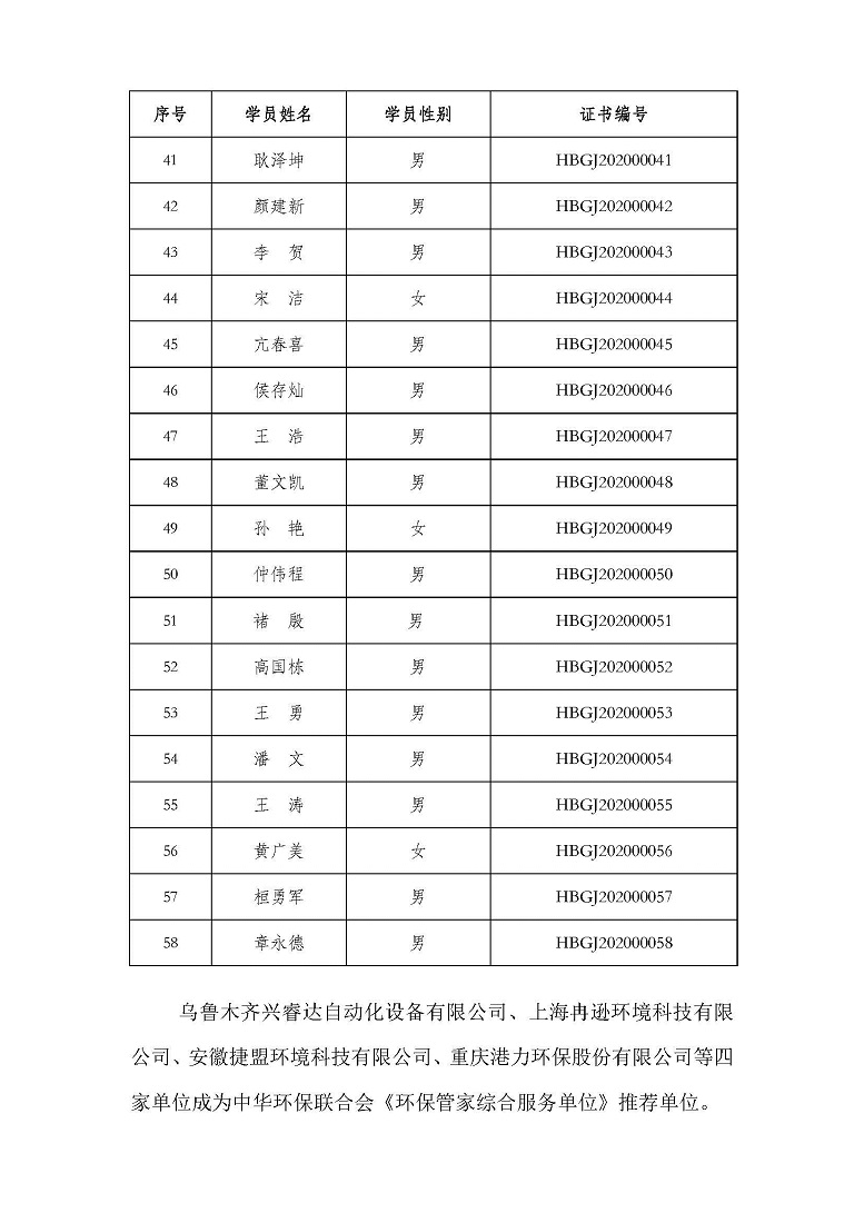 2020年第一期环保管家案例精讲及技术规范解读培训合格学员公示名单