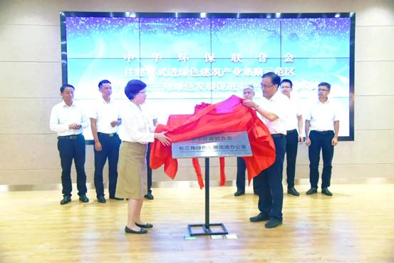 签约仪式上,中华环保联合会与绿建区签定战略合作协议,并在绿建区挂牌成立“长三角绿色发展促进办公室”。