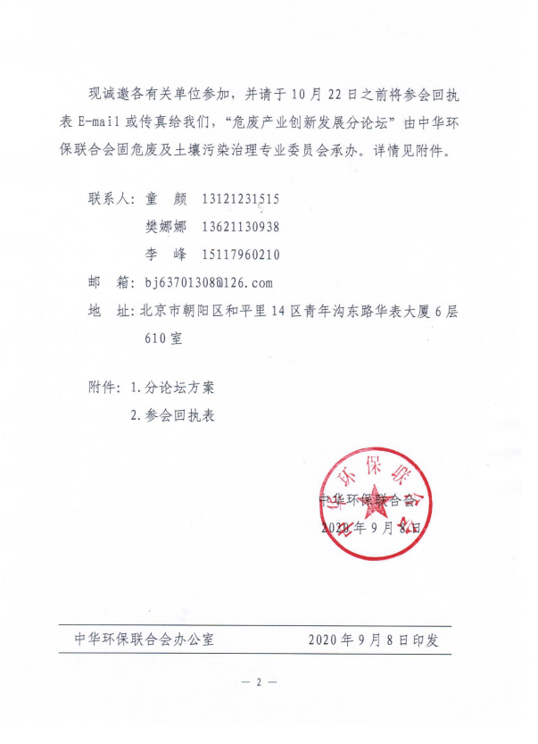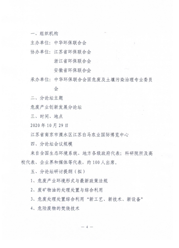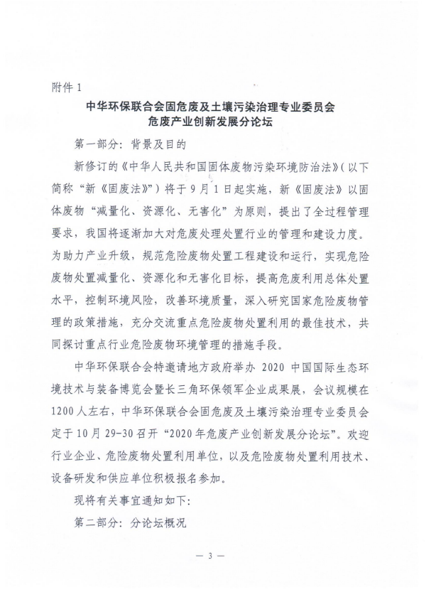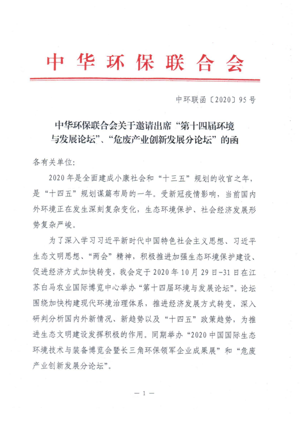 关于邀请出席“第十四届环境与发展论坛”、“危废产业创新发展分论坛”的函