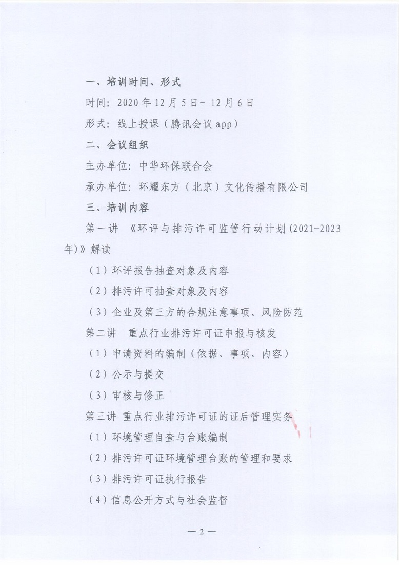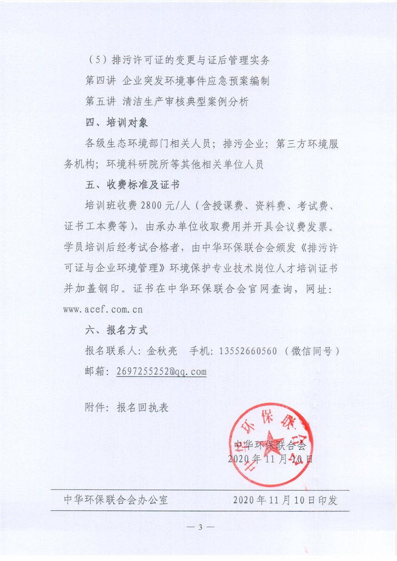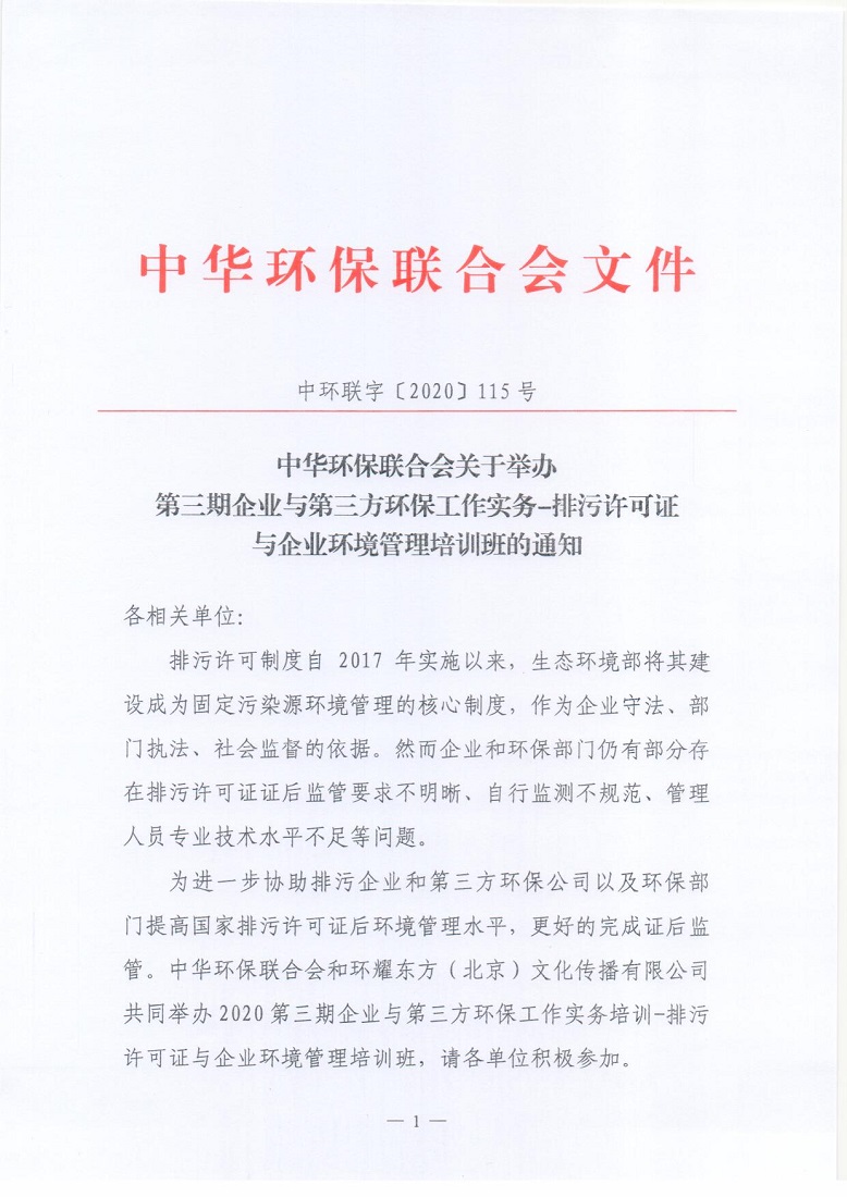 中华环保联合会关于举办第三期企业与第三方环保工作实务-排污许可证与企业环境管理培训班的通知