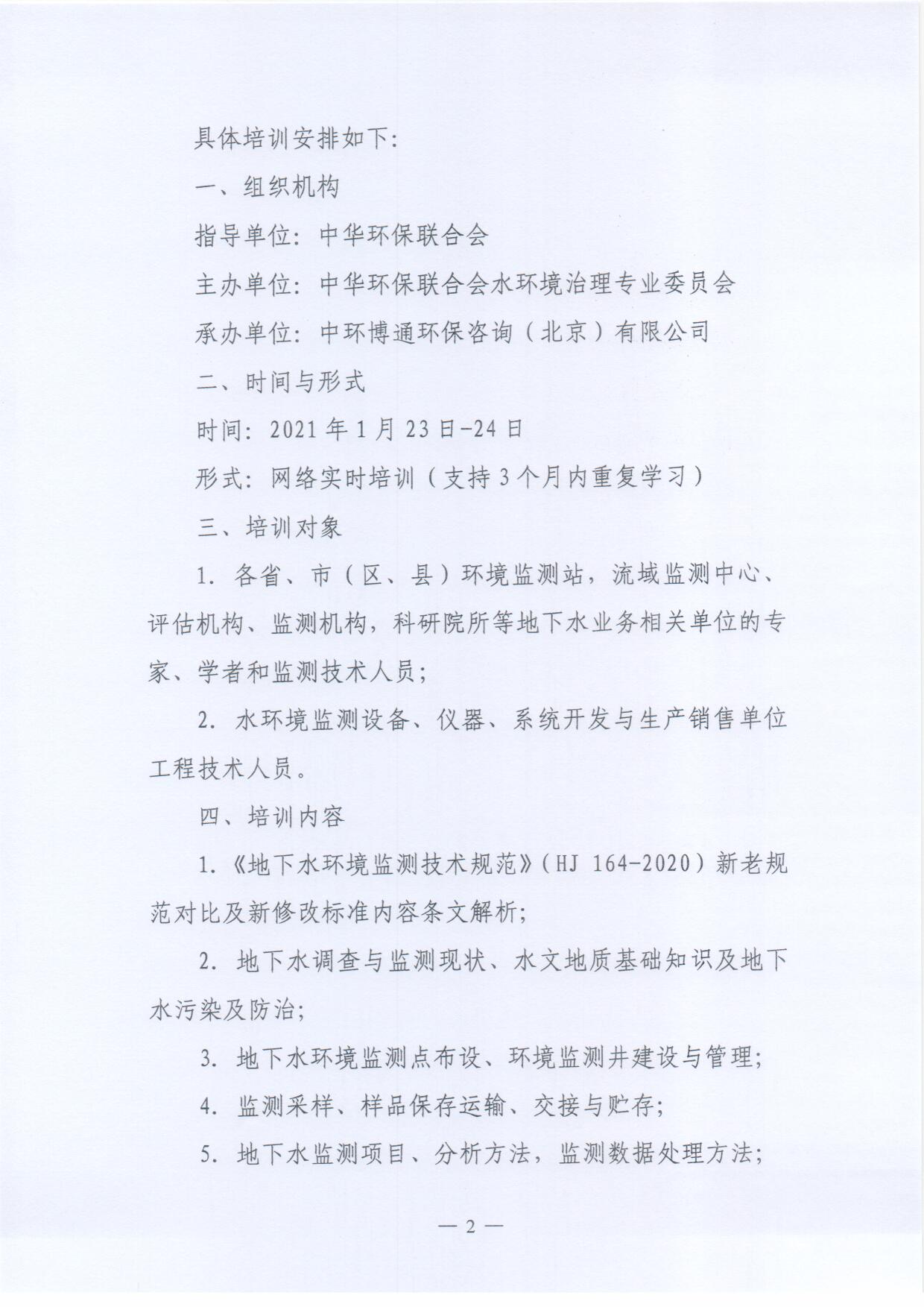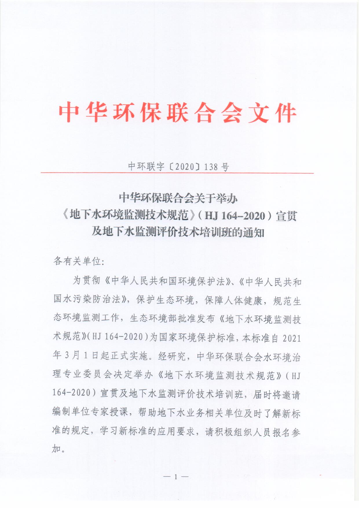 关于举办《地下水环境监测技术规范》(HJ 164-2020)宣贯及地下水监测评价技术培训班的通知
