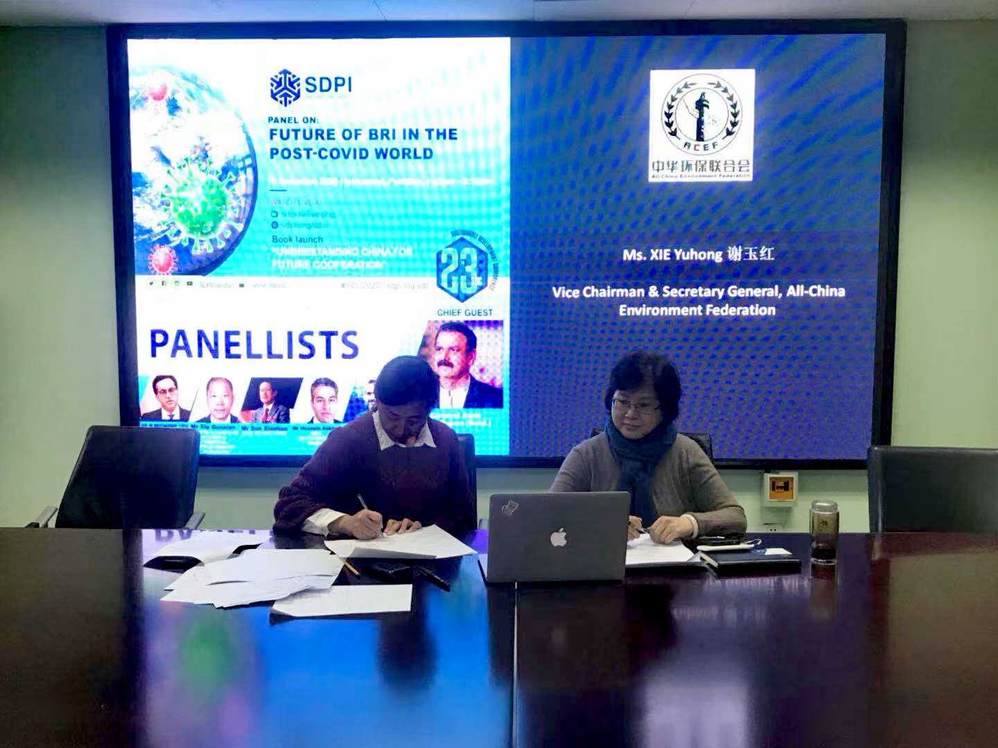 巴基斯坦第二十三届可持续发展大会于 12 月14-17日在伊斯兰堡召开。本届大会主题为:疫情时代下的可持续发展,围绕新冠疫情影响开展关于后疫情时代经济数字化、远程医疗、 教育、亚太能源转型区域合作、应对气候变化以及“一带一路”等系列专题研讨。中华环保联合会主席孙晓华、副主席兼秘书长谢玉红受邀代表中国民间环保组织出席15日召开的“后疫情时代‘一带一路‘前景”专题研讨会,出席该专题研讨会的主要嘉宾还包括巴基斯坦中巴经济走廊事务局主席Asim Saleem Bajawa , 巴基斯坦外交部(中国)司长Muhammad Mudassir Tipu , 瑞典“一带一路”执行小组顾问 Hussein Askary,中国驻巴基斯坦大使馆经济商务参赞 Xie Guoxian,会议由巴基斯坦可持续发展政策研究所亚洲研究中心主任 Shakeel Ramay主持,会议期间发布了由Shakeel Ramay编写的新书《深入理解中国 提升中巴合作》。