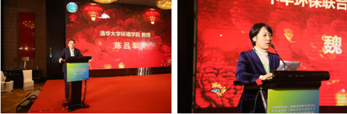 清华大学环境学院教授、博士生导师、中华环保联合会绿色技术发展专业委员会副主任委员陈吕军老师和中华环保联合会绿色技术发展专业委员会秘书长、中华环保联合会生态环境领军班负责人魏爱新老师在晚宴上先后致辞。