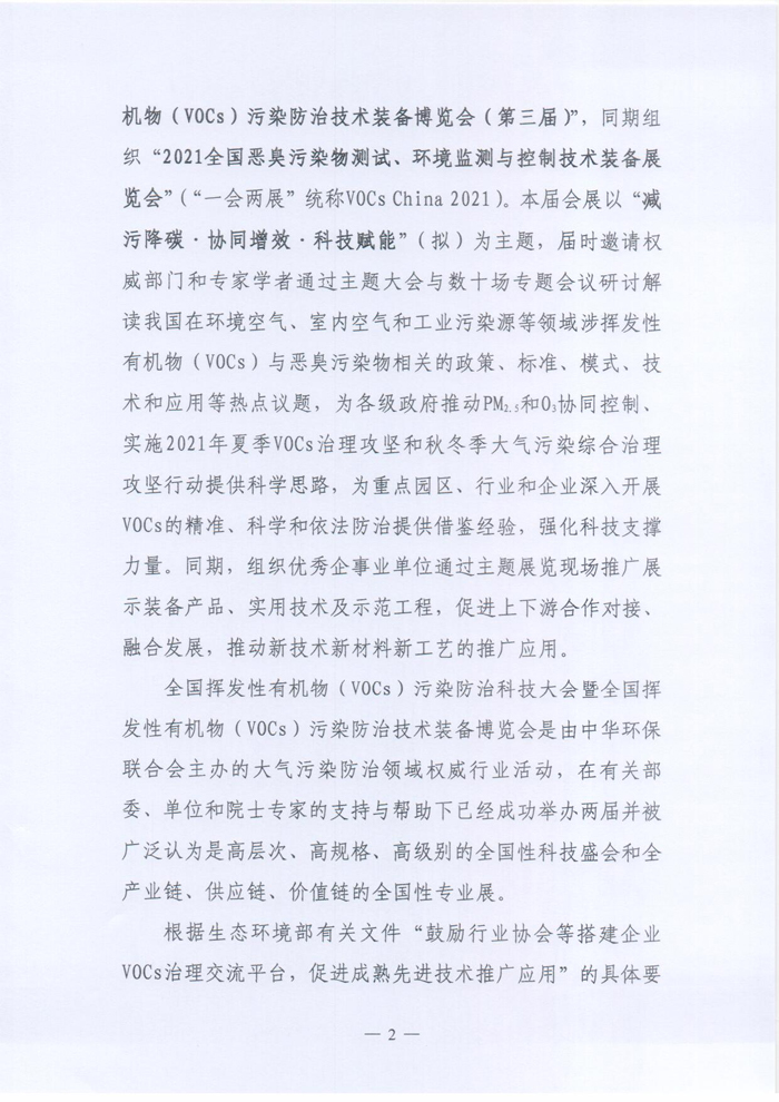 关于举办“2021全国挥发性有机物(VOCs)污染防治科技大会暨2021全国挥发性有机物(VOCs)污染防治技术装备博览会,2021全国恶臭污染物测试、环境监测与控制技术装备展览会”的预通知