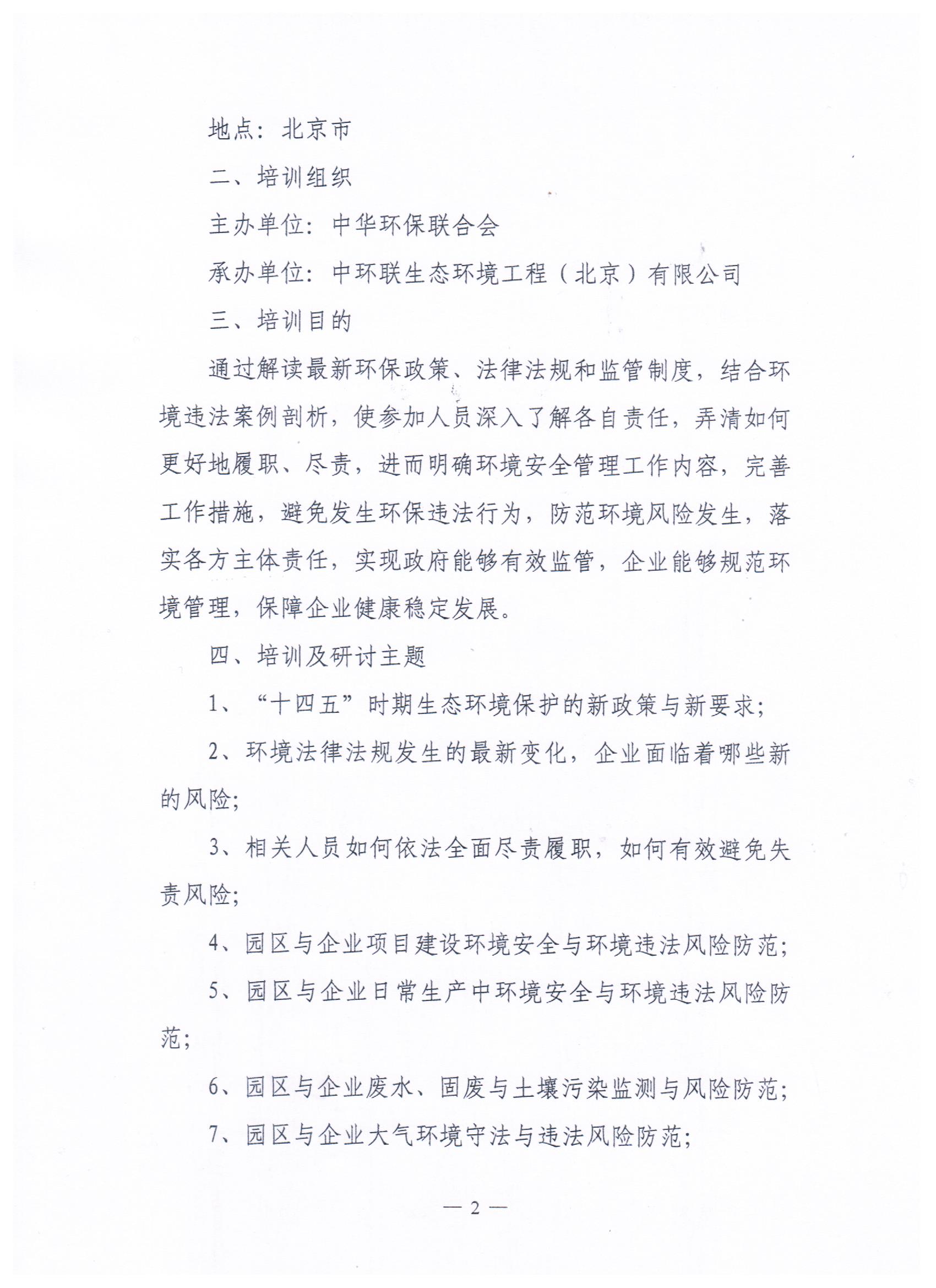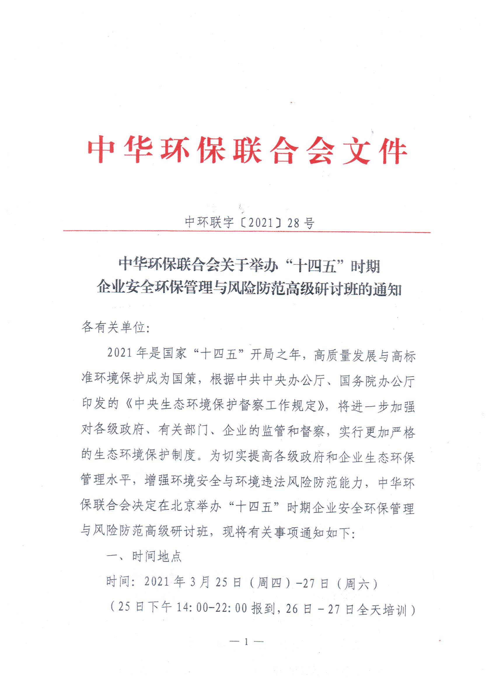 关于举办“十四五”时期企业安全环保管理与风险防范高级研讨班的通知