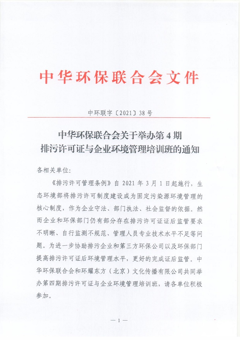 关于举办第4期排污许可证与企业环境管理培训班的通知