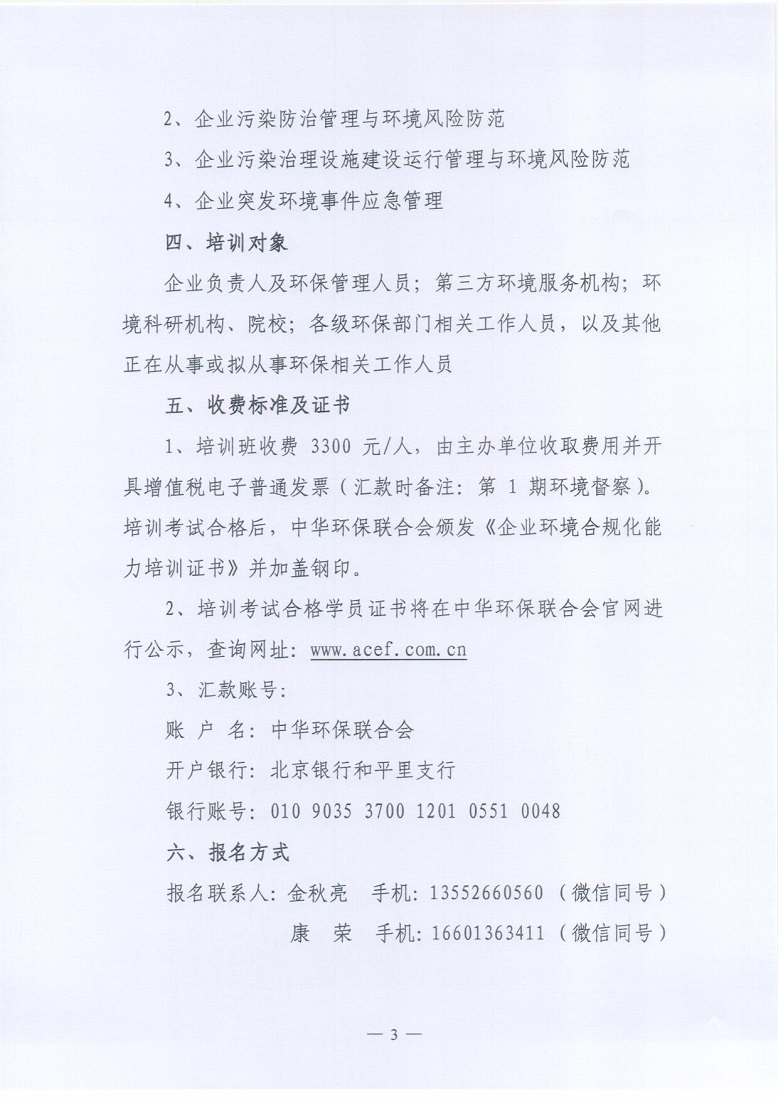 关于举办2021年第1期中央生态环境保护督察形势下企业积极应对与环境合规化管理培训班