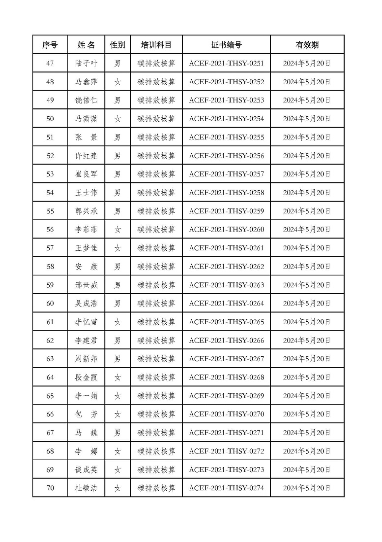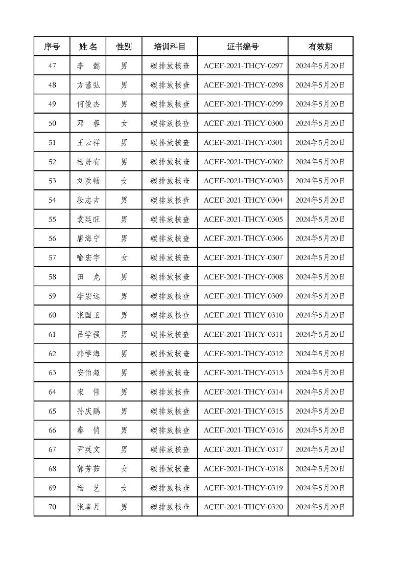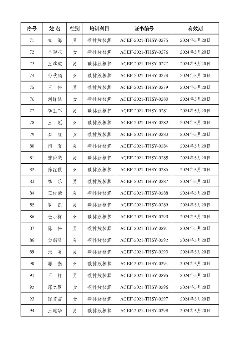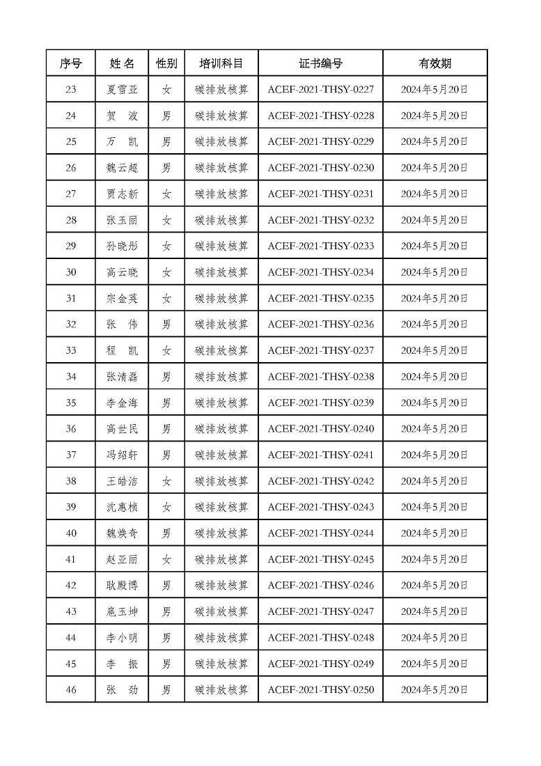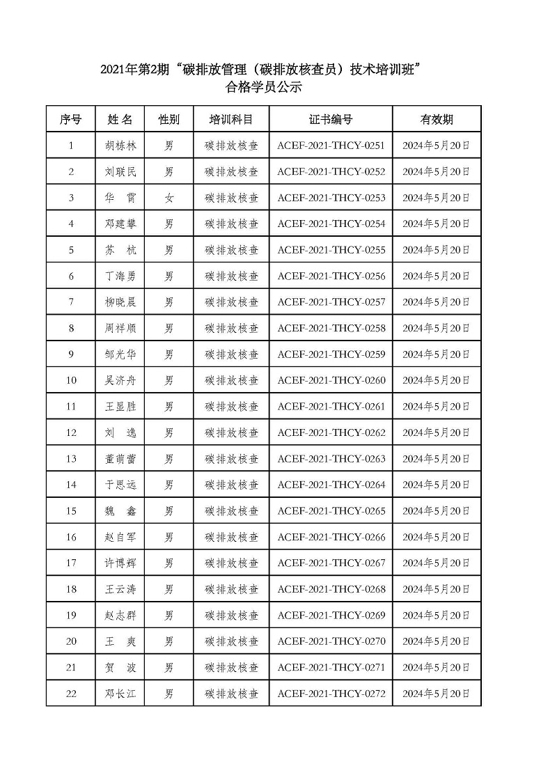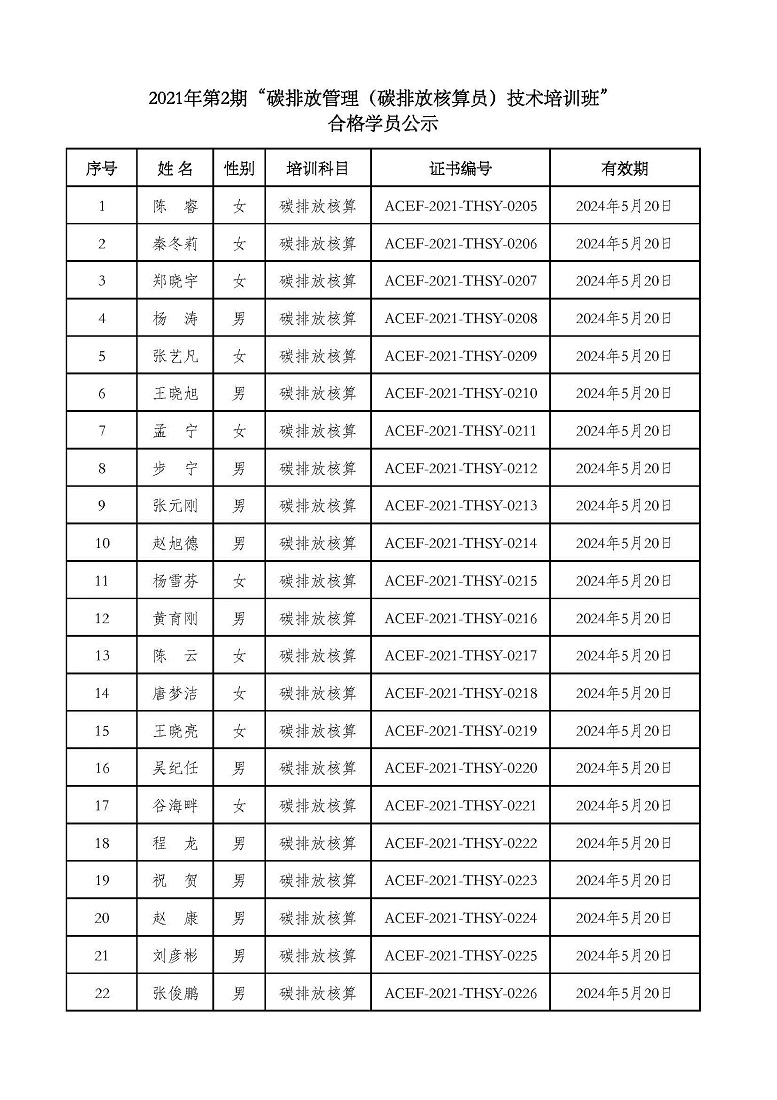 2021年第2期“碳排放管理(碳排放核算员、碳排放核查员)技术培训班”合格学员公示