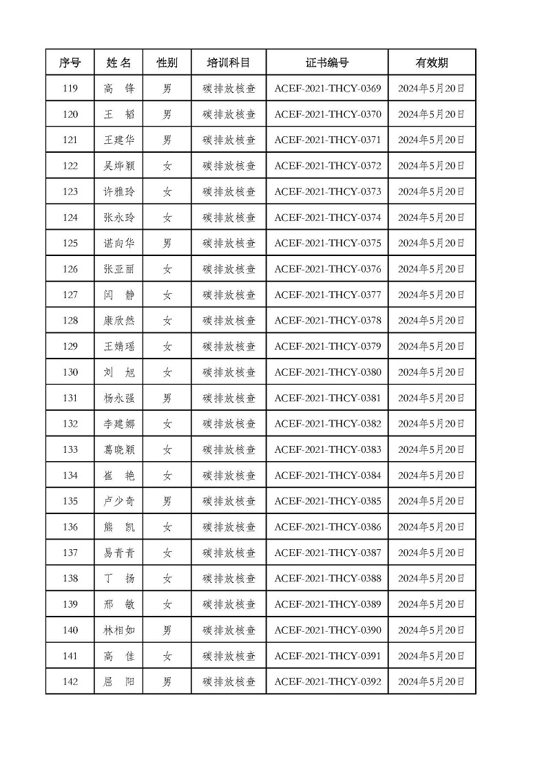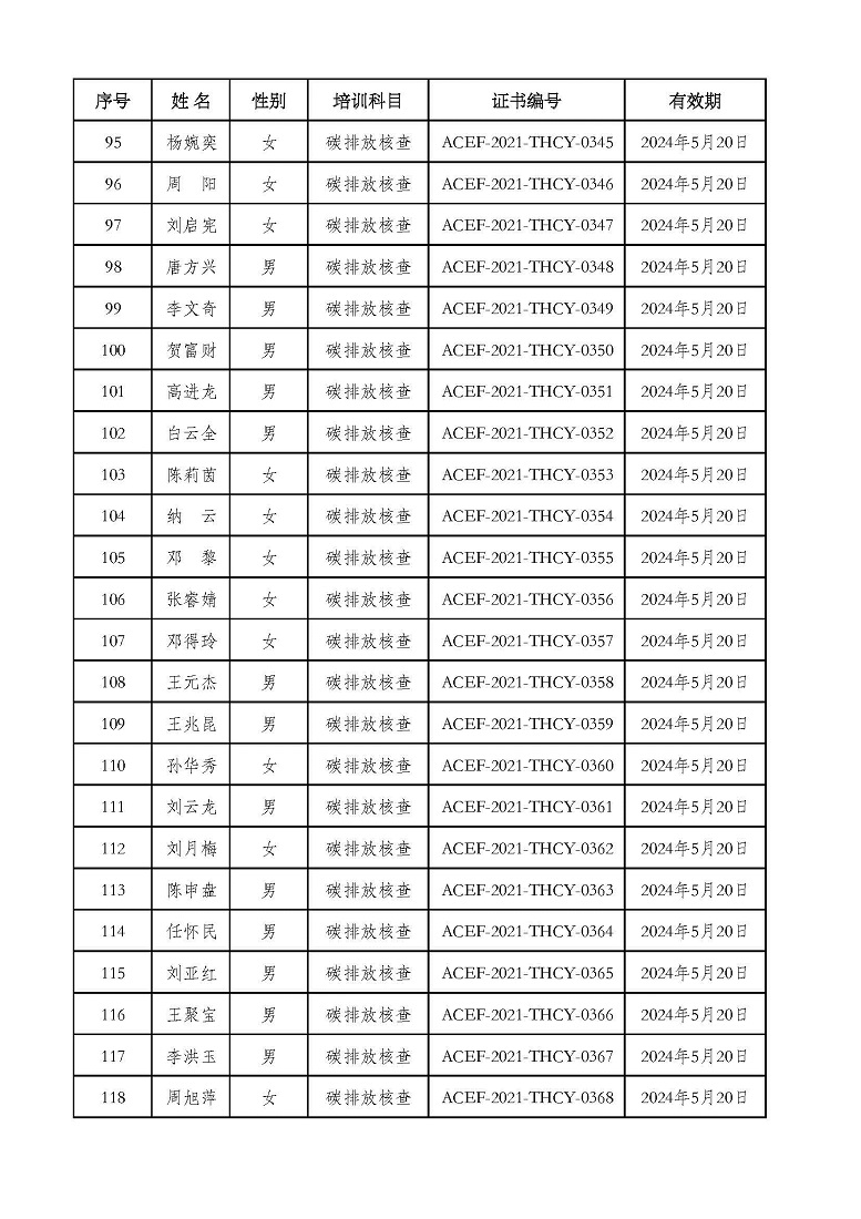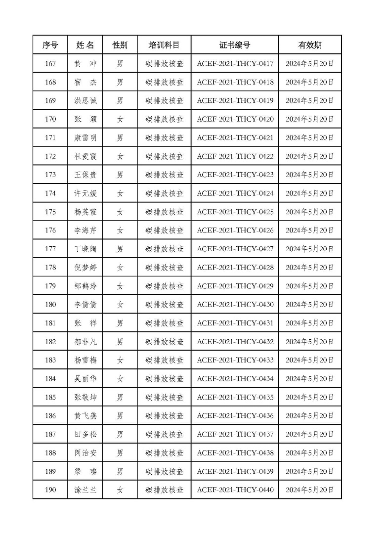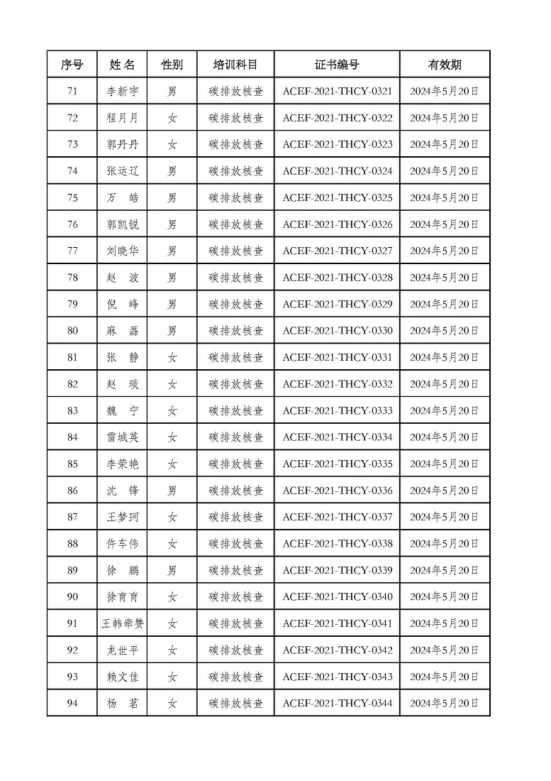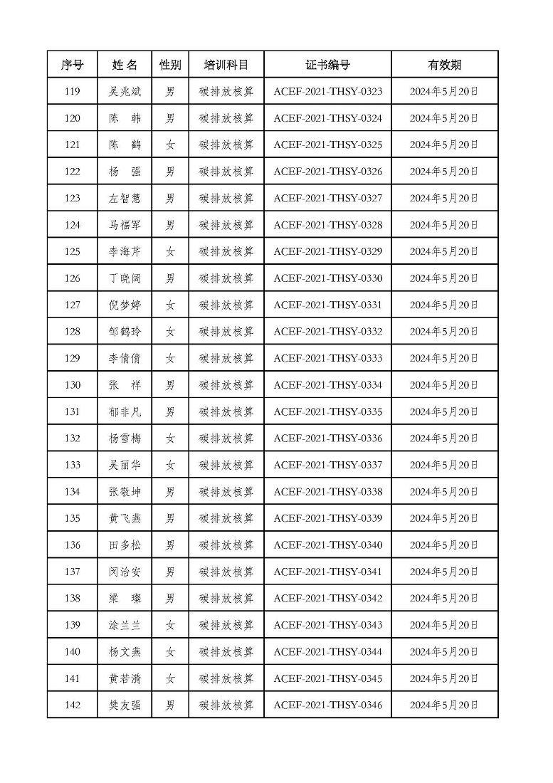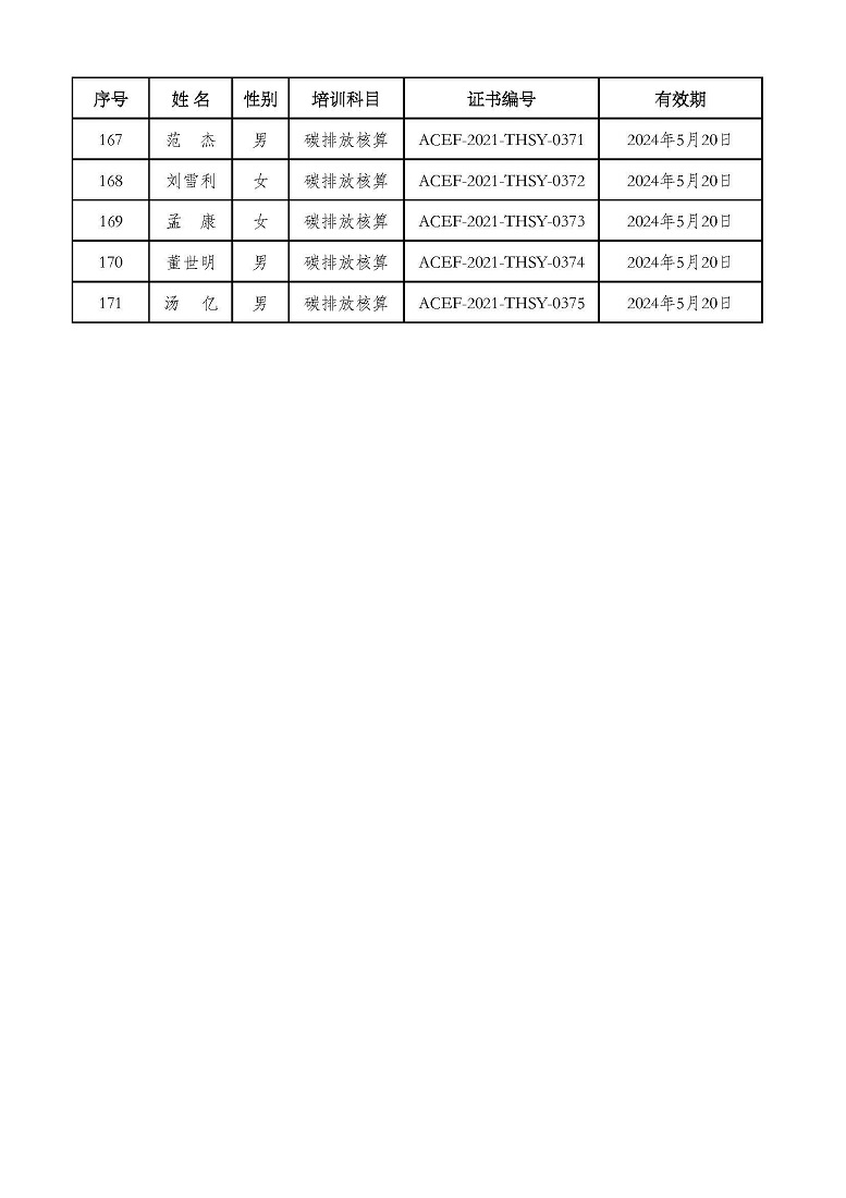 2021年第2期“碳排放管理(碳排放核算员、碳排放核查员)技术培训班”合格学员公示