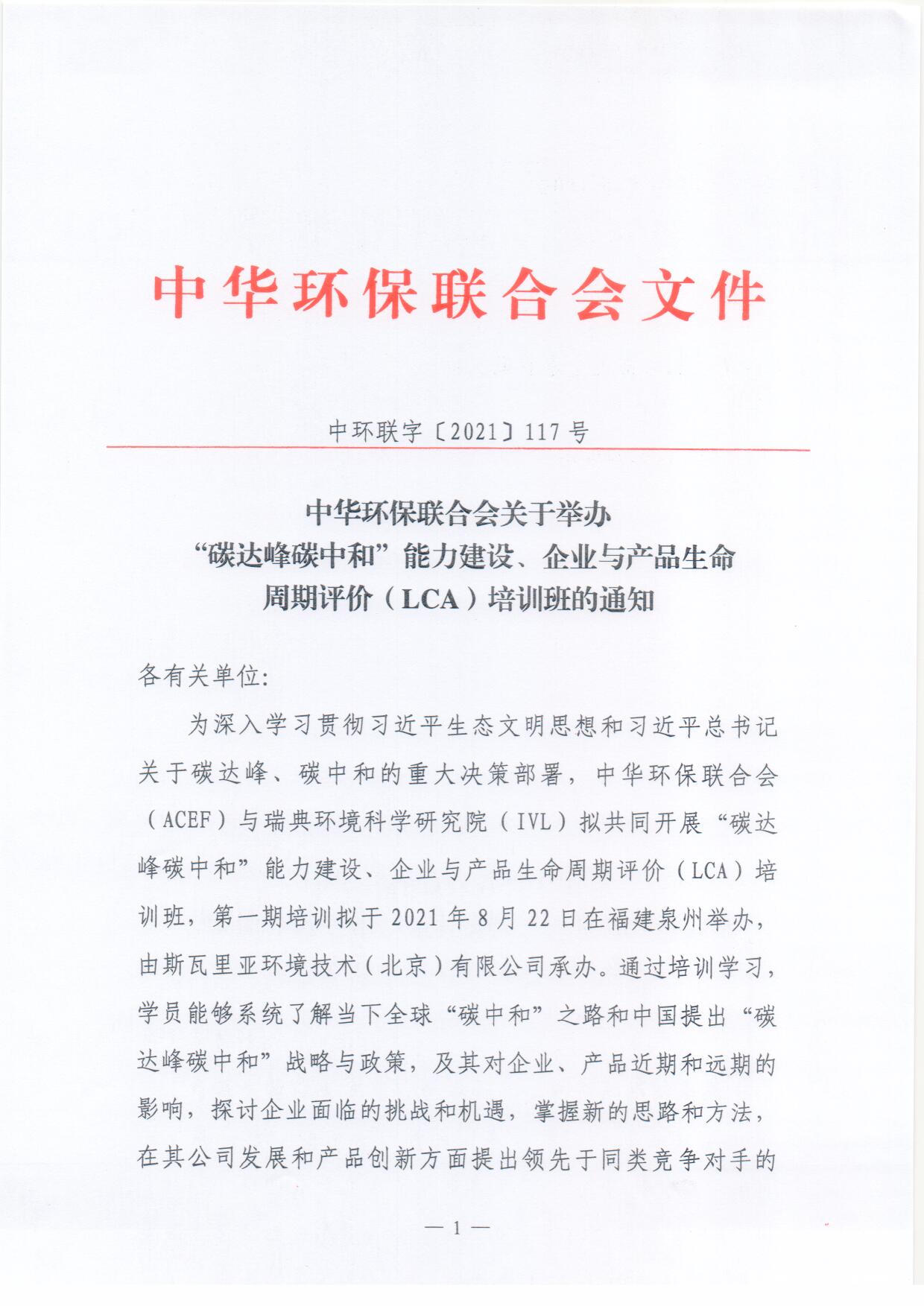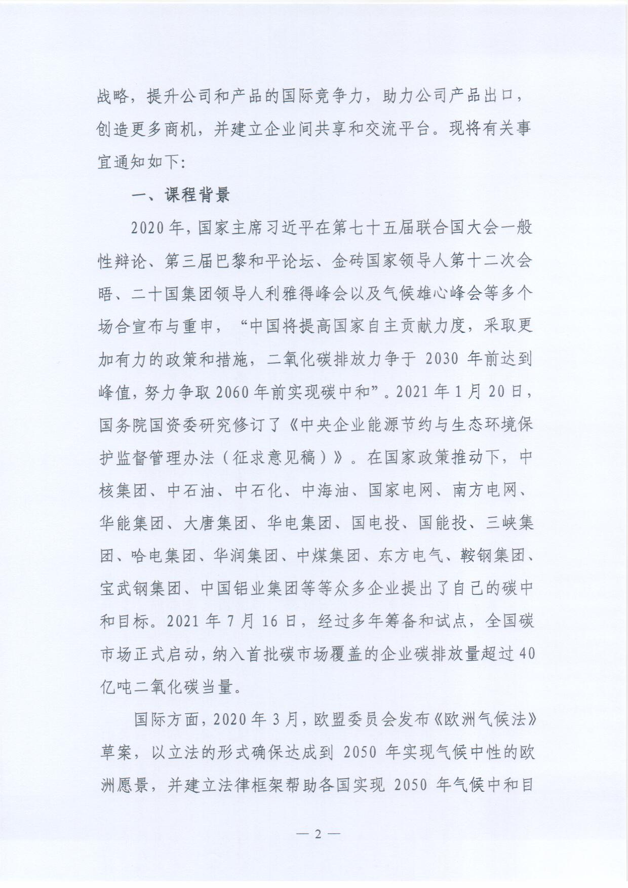 关于举办“碳达峰碳中和”能力建设、企业与产品生命周期评价(LCA)培训班的通知