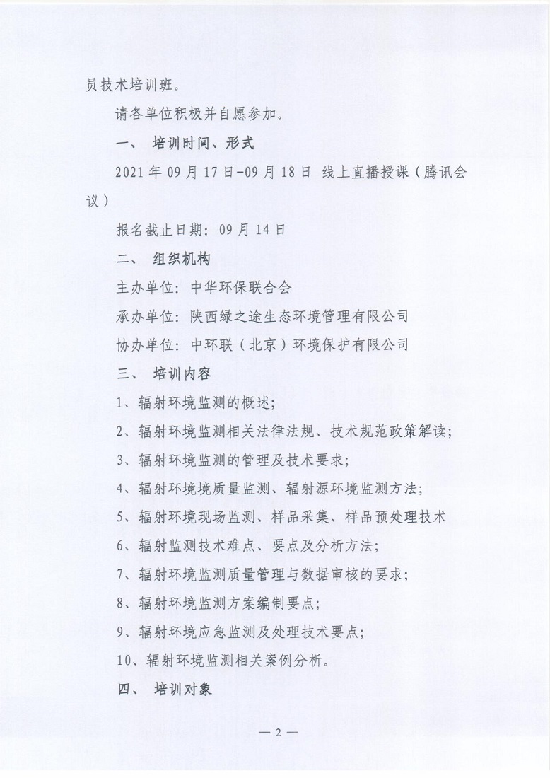 关于举办2021年第2期“全国辐射环境监测从业人员技术培训班”的通知