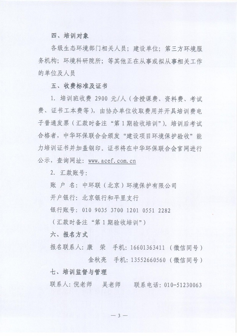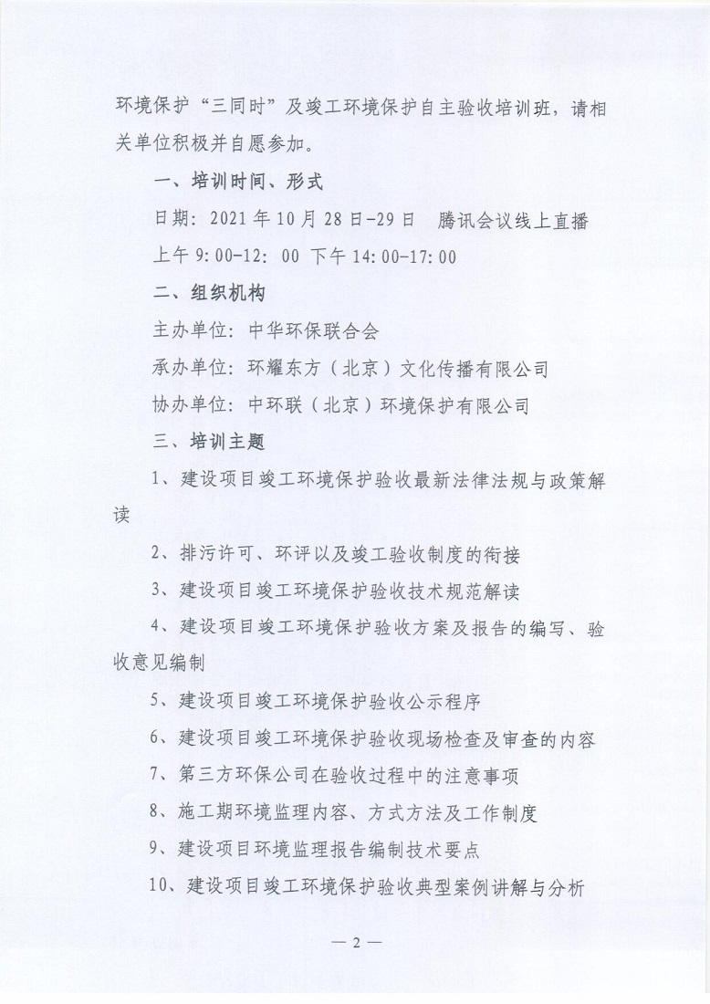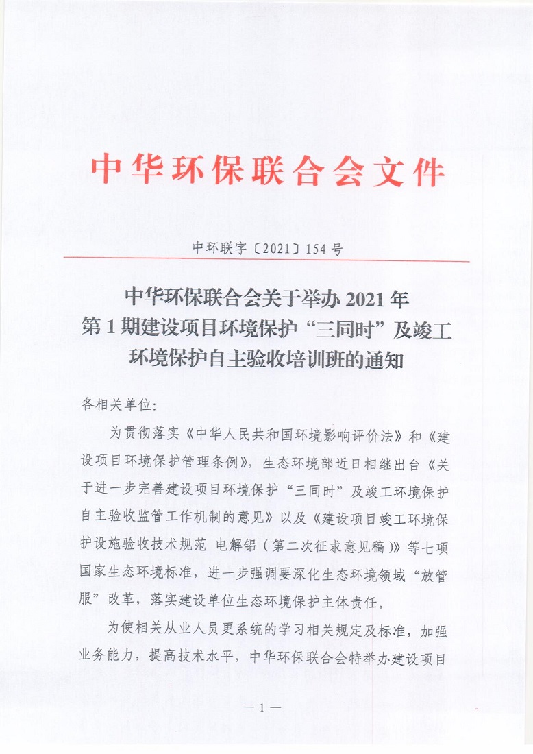 关于举办2021年第1期 建设项目环境保护“三同时”及竣工环境保护自主验收培训班的通知