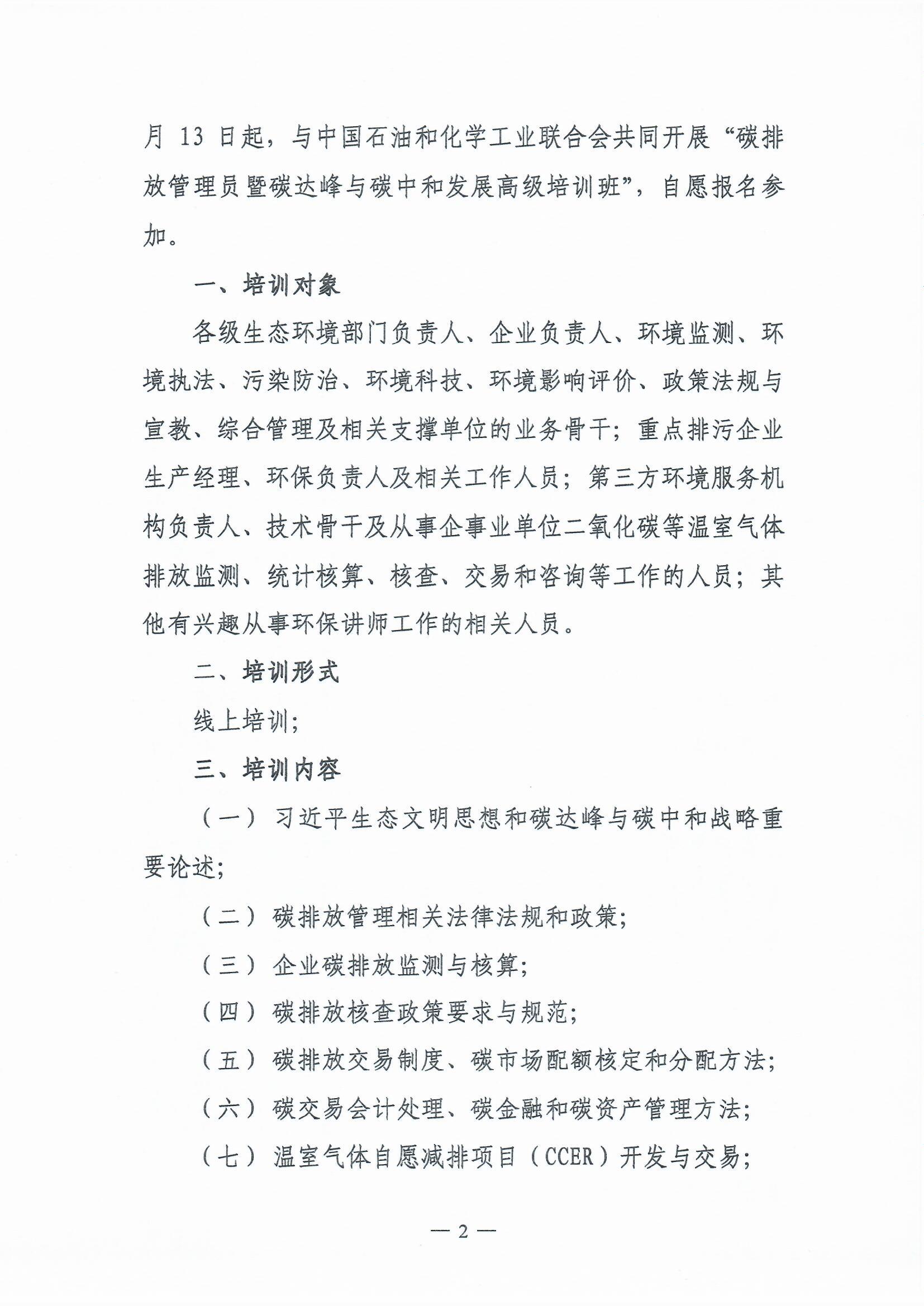 关于举办碳排放管理员暨碳达峰与碳中和发展高级培训班(第9期)的通知