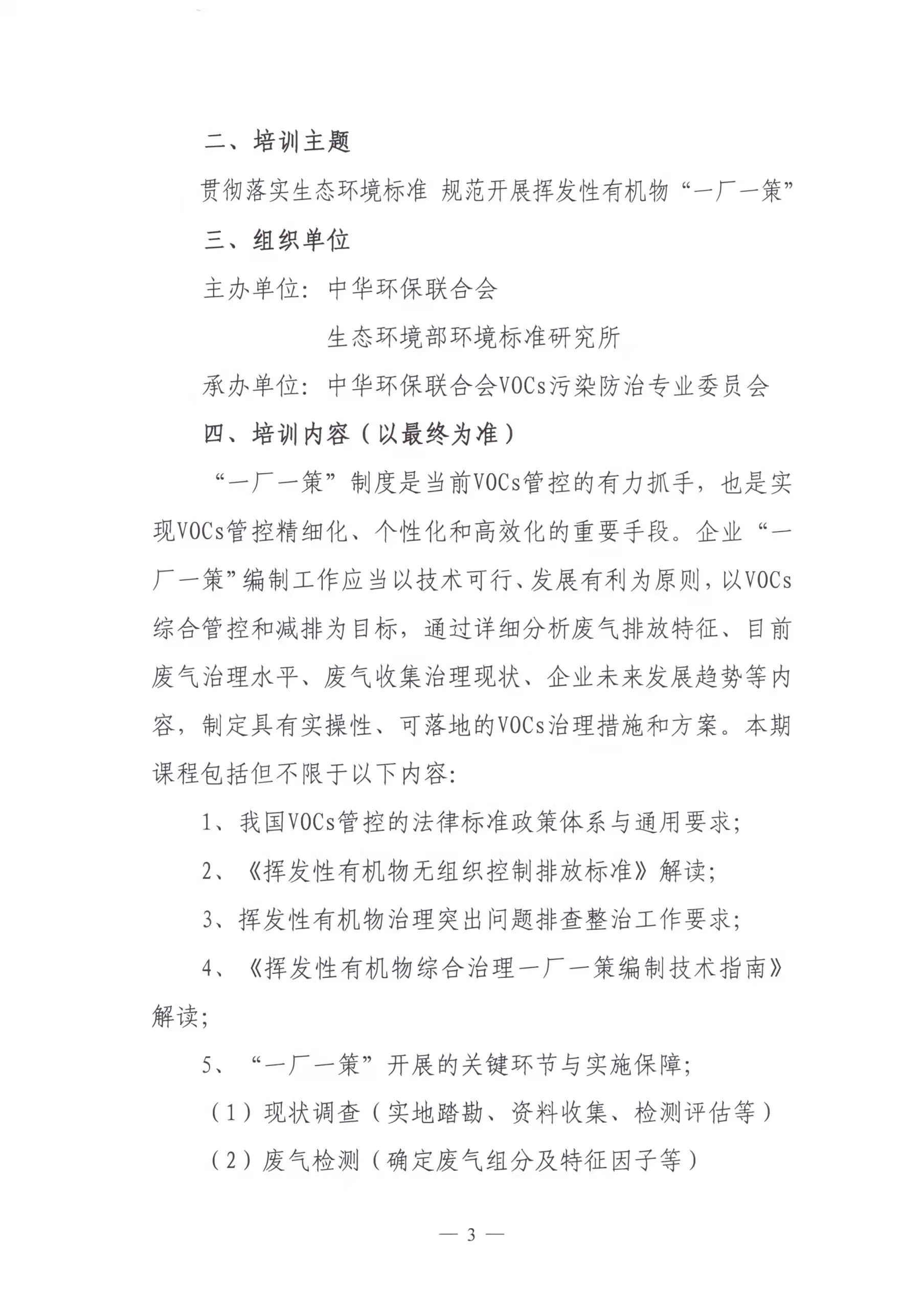 关于举办2022年度挥发性有机物综合治理一厂一策从业人员培训班的通知