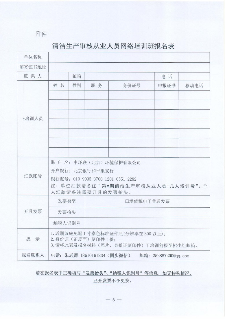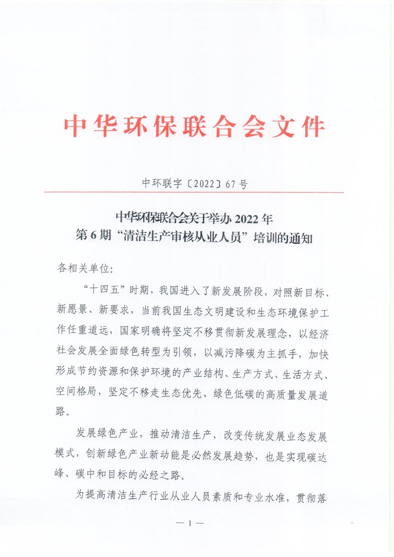 关于举办2022年第6期“清洁生产审核从业人员”培训的通知