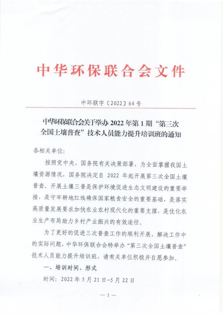 关于举办2022年第1期“第三次全国土壤普查”技术人员 能力提升培训班的通知