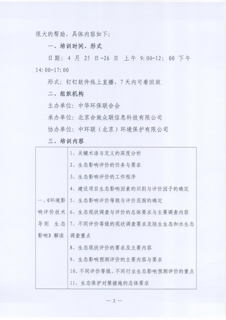 关于举办2022年第1期最新环评导则(声环境和生态环境)解读与环评编制常见问题及解决方法培训班的通知
